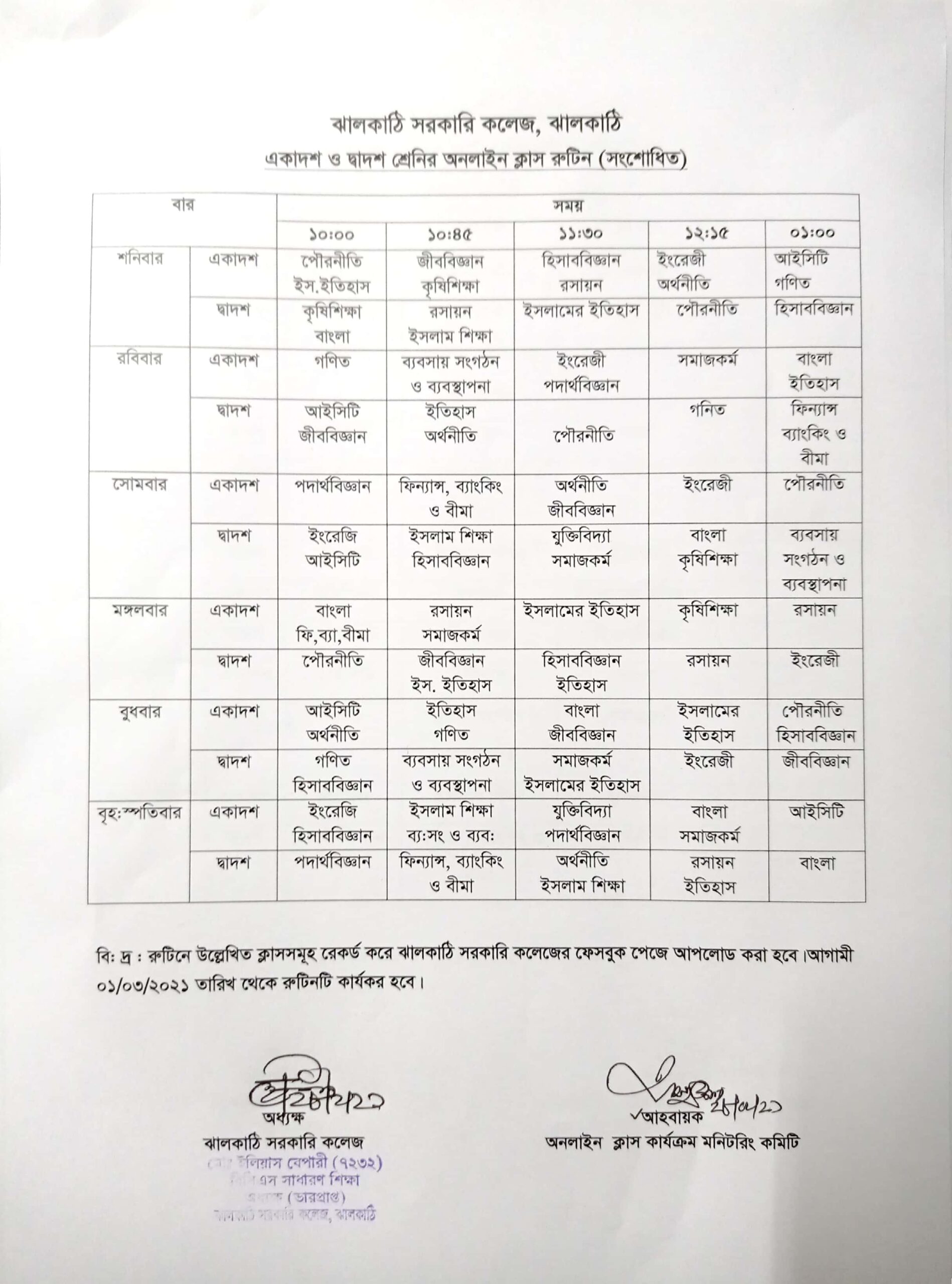 একাদশ ও দ্বাদশ শ্রেণির অনলাইন ক্লাস রুটিন ( সংশোধিত ) প্রকাশিতঃ ২৮ ফেব্রুয়ারী , ২০২১, ৫:৫৮ অপরাহ্ন Facebook Twitter Print Facebook Twitter Print