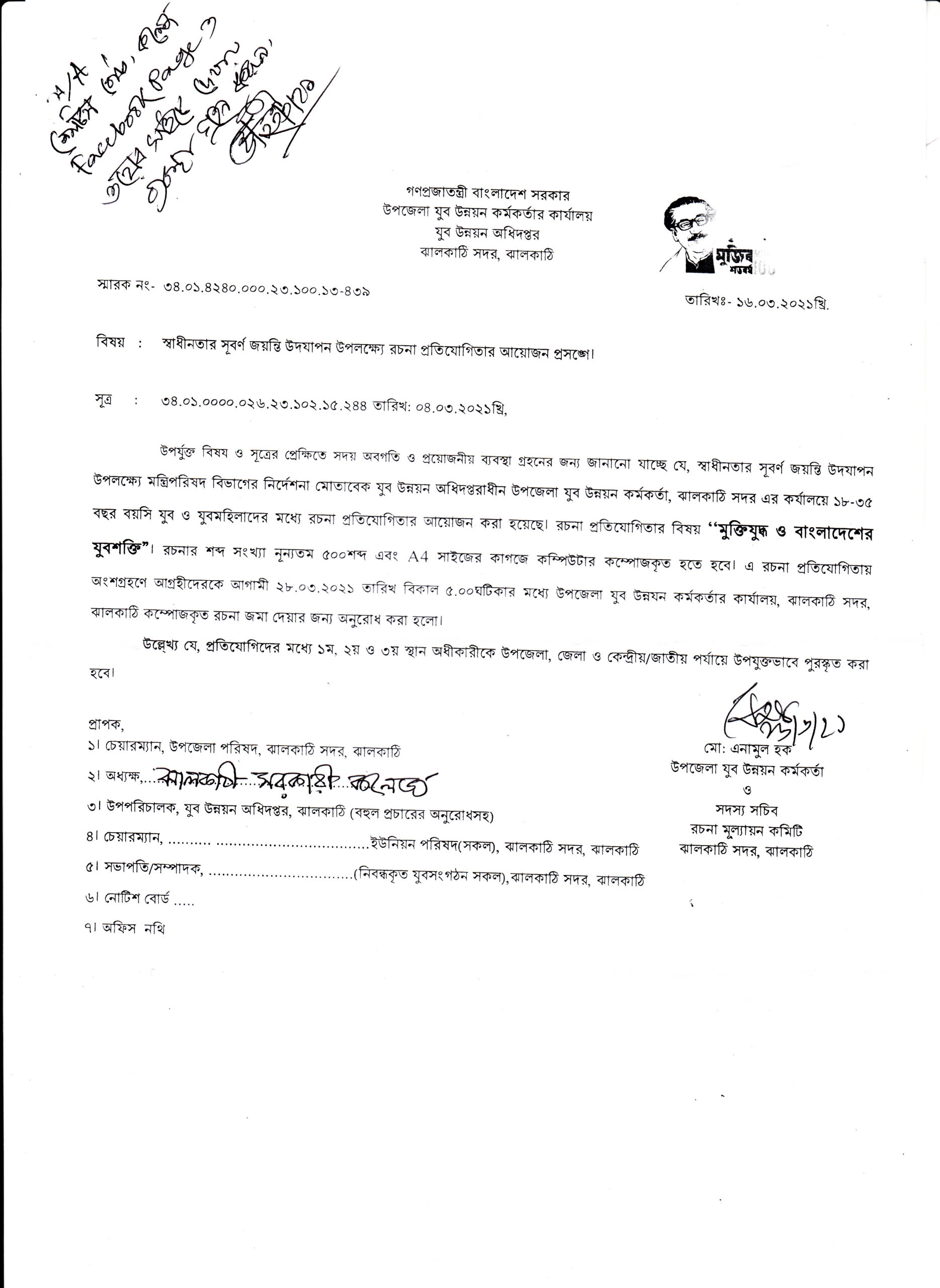 স্বাধীনতার সুবর্ণ জয়ন্তি উদযাপন উপলক্ষ্যে শিক্ষার্থীদের নিকট থেকে রচনা প্রতিযোগিতার লেখার আহ্বান । প্রকাশিতঃ ২৩ মার্চ , ২০২১, ১:০৫ অপরাহ্ন Facebook Twitter Print Facebook Twitter Print
