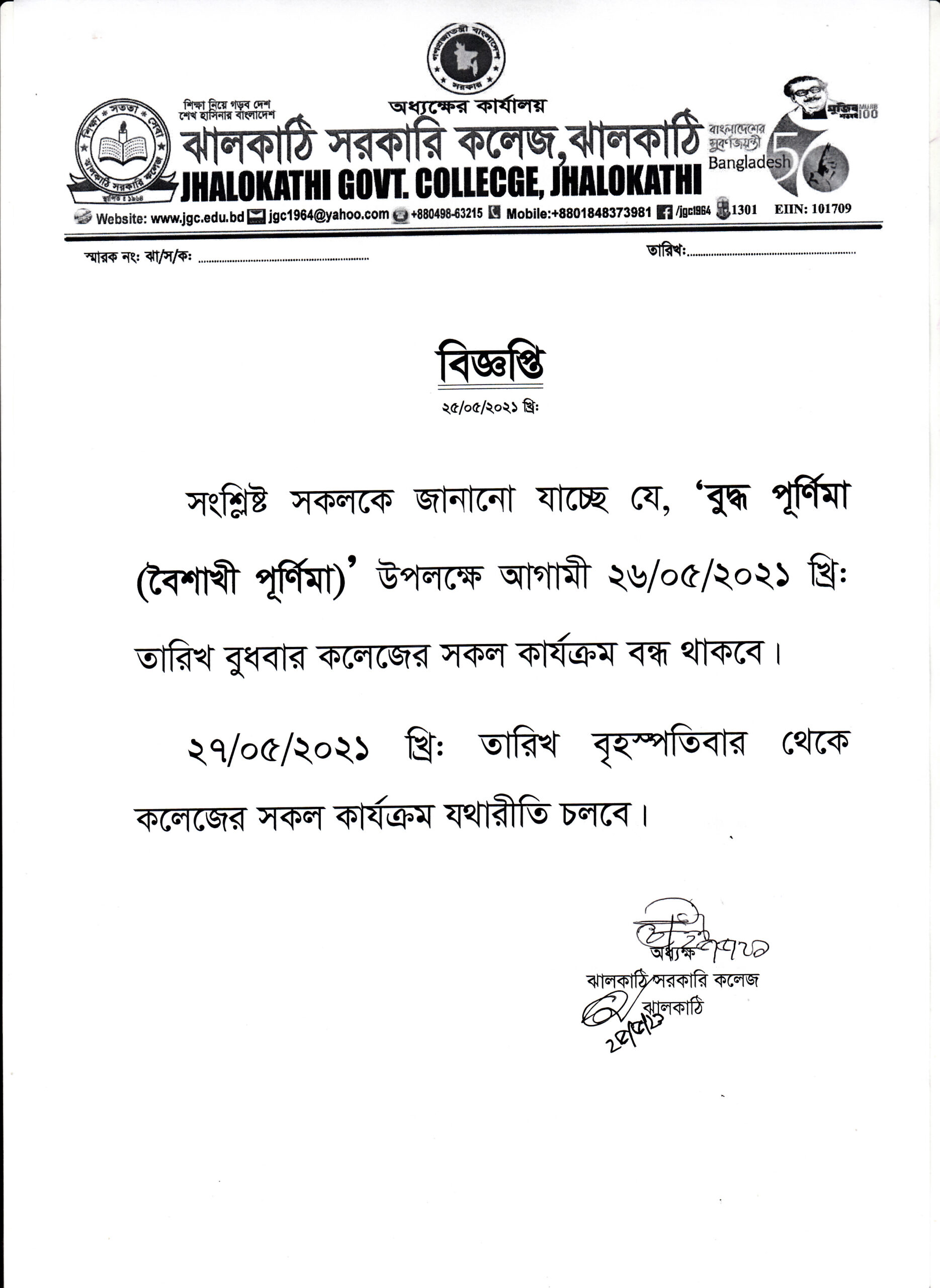 কলেজের সকল কার্যক্রম স্থগিতের বিজ্ঞপ্তি প্রকাশিতঃ ২৫ মে , ২০২১, ২:৩০ অপরাহ্ন Facebook Twitter Print Facebook Twitter Print