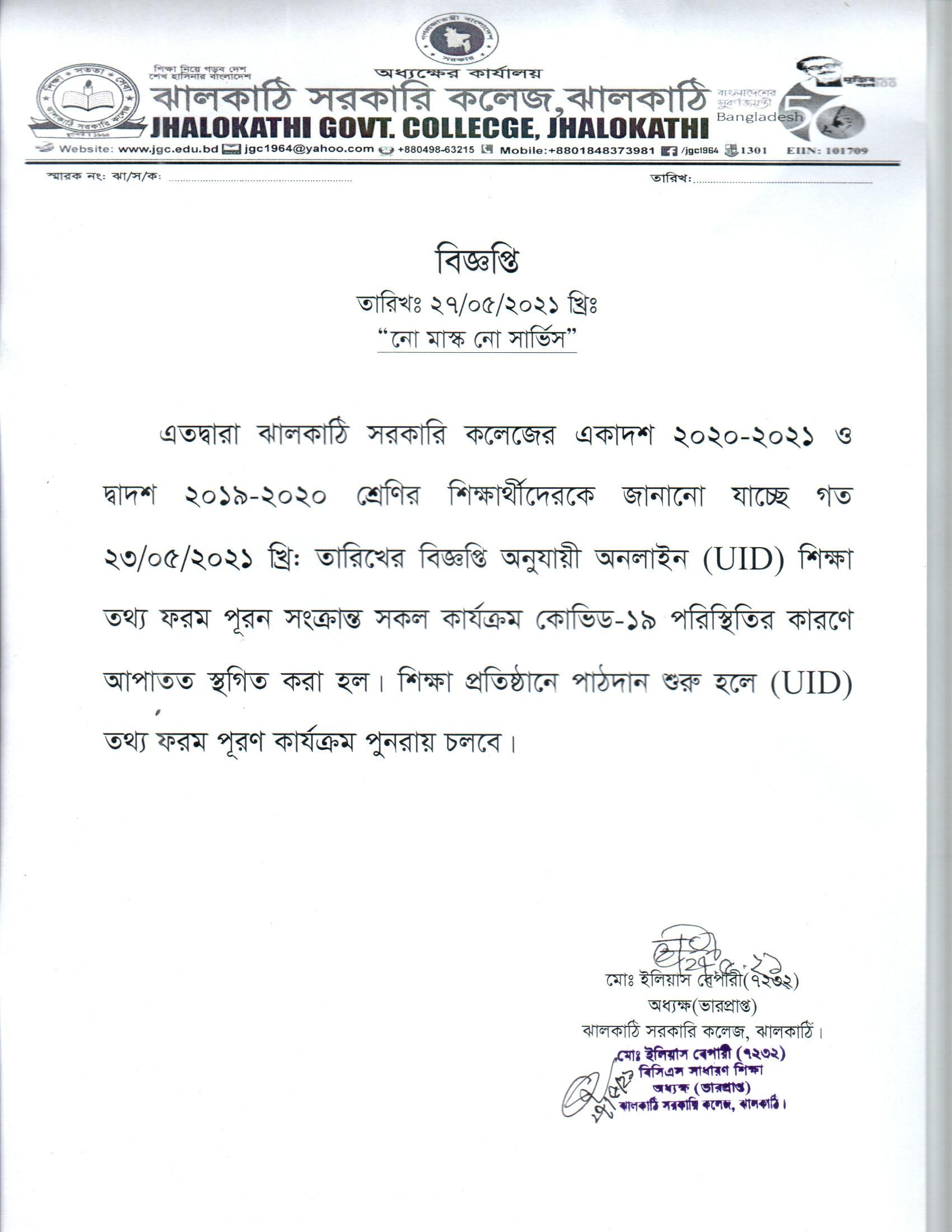 অনলাইন (UID) শিক্ষা তথ্য ফরম পূরণ সংক্রান্ত সকল কার্যক্রম কোভিড-১৯ পরিস্থির কারণে আপাতত স্থগিত করা হল। প্রকাশিতঃ ২৭ মে , ২০২১, ১১:৩৯ পূর্বাহ্ন Facebook Twitter Print Facebook Twitter Print