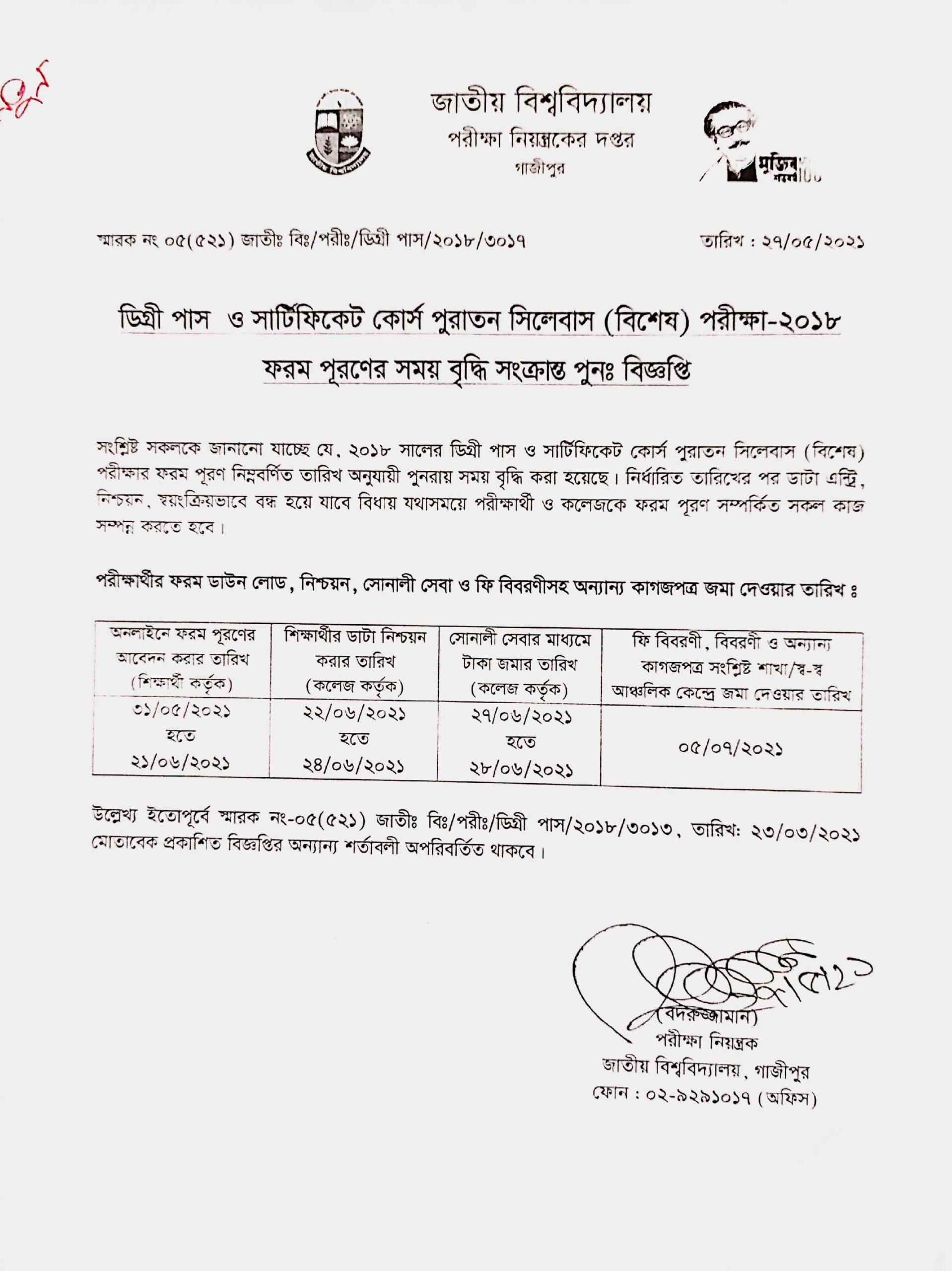 ২০১৮ সালের ডিগ্রি পাস ও সার্টিফিকেট কোর্স পুরাতন সিলেবাস (বিশেষ) পরীক্ষার ফরম পূরণ প্রকাশিতঃ ২৯ মে , ২০২১, ১২:১৪ অপরাহ্ন Facebook Twitter Print https://www.facebook.com/JGC1964/photos/a.1436346746598880/2979177382315801/ Facebook Twitter Print