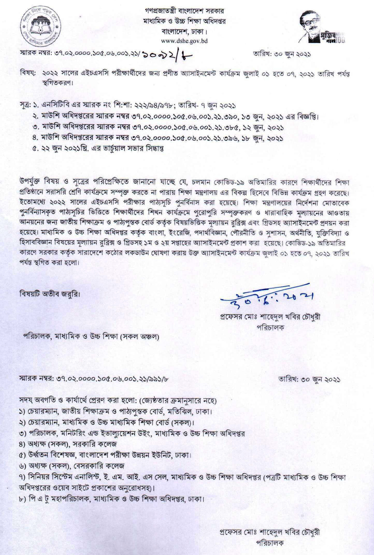 একাদশ শ্রেণির (উচ্চ মাধ্যমিক পরীক্ষা-২০২২) অ্যাসাইনমেন্ট স্থগিত সংক্রান্ত বিজ্ঞপ্তি প্রকাশিতঃ ৩০ জুন , ২০২১, ১০:৪৬ অপরাহ্ন Facebook Twitter Print https://www.facebook.com/JGC1964/photos/a.1436346746598880/3001938780039661/ Facebook Twitter Print