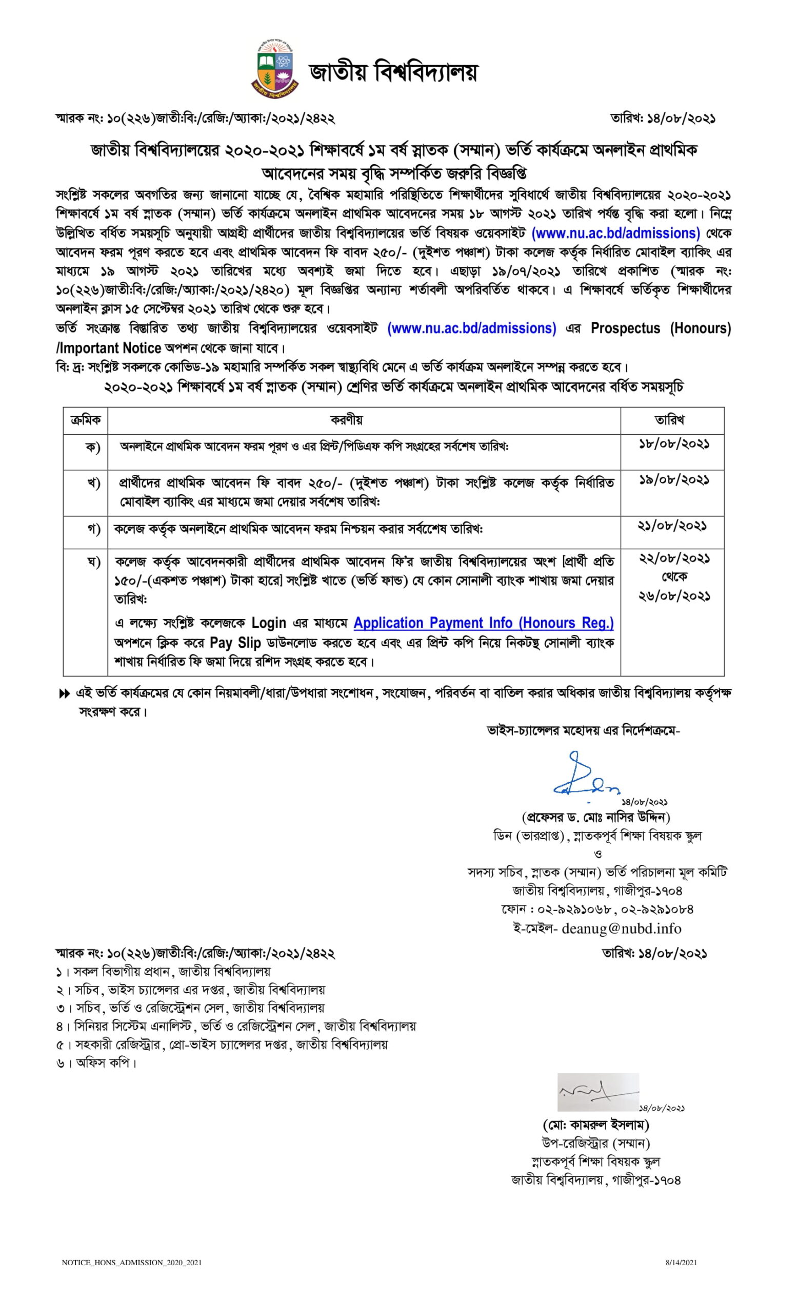 অনার্স ১ম বর্ষের ভর্তির আবেদন সময়সীমা ১৮ আগস্ট পর্যন্ত বর্ধিত সংক্রান্ত নোটিশ প্রকাশিতঃ ১৪ অগাস্ট , ২০২১, ১০:৩০ অপরাহ্ন Facebook Twitter Print Facebook Twitter Print