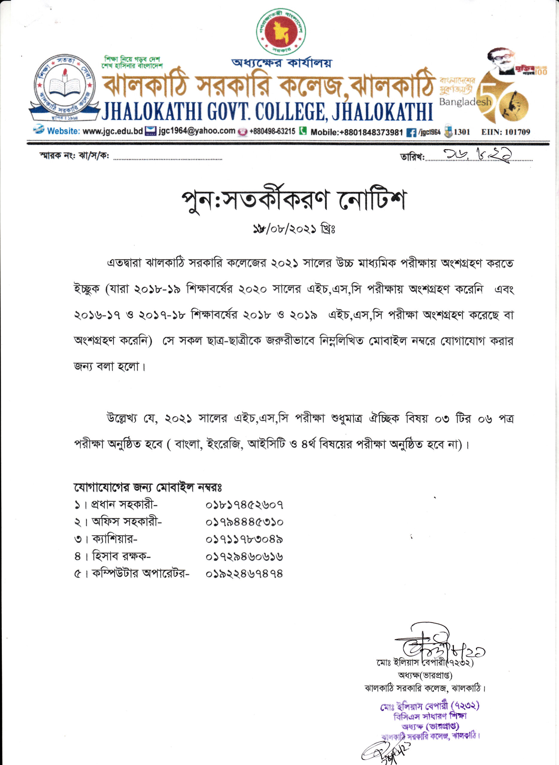 ২০২১ সালের উচ্চমাধ্যমিক পরীক্ষার ফরম পূরণ সংক্রান্ত পুন: সতর্কীকরণ নোটিশ প্রকাশিতঃ ১৮ অগাস্ট , ২০২১, ১২:২৭ অপরাহ্ন Facebook Twitter Print Facebook Twitter Print