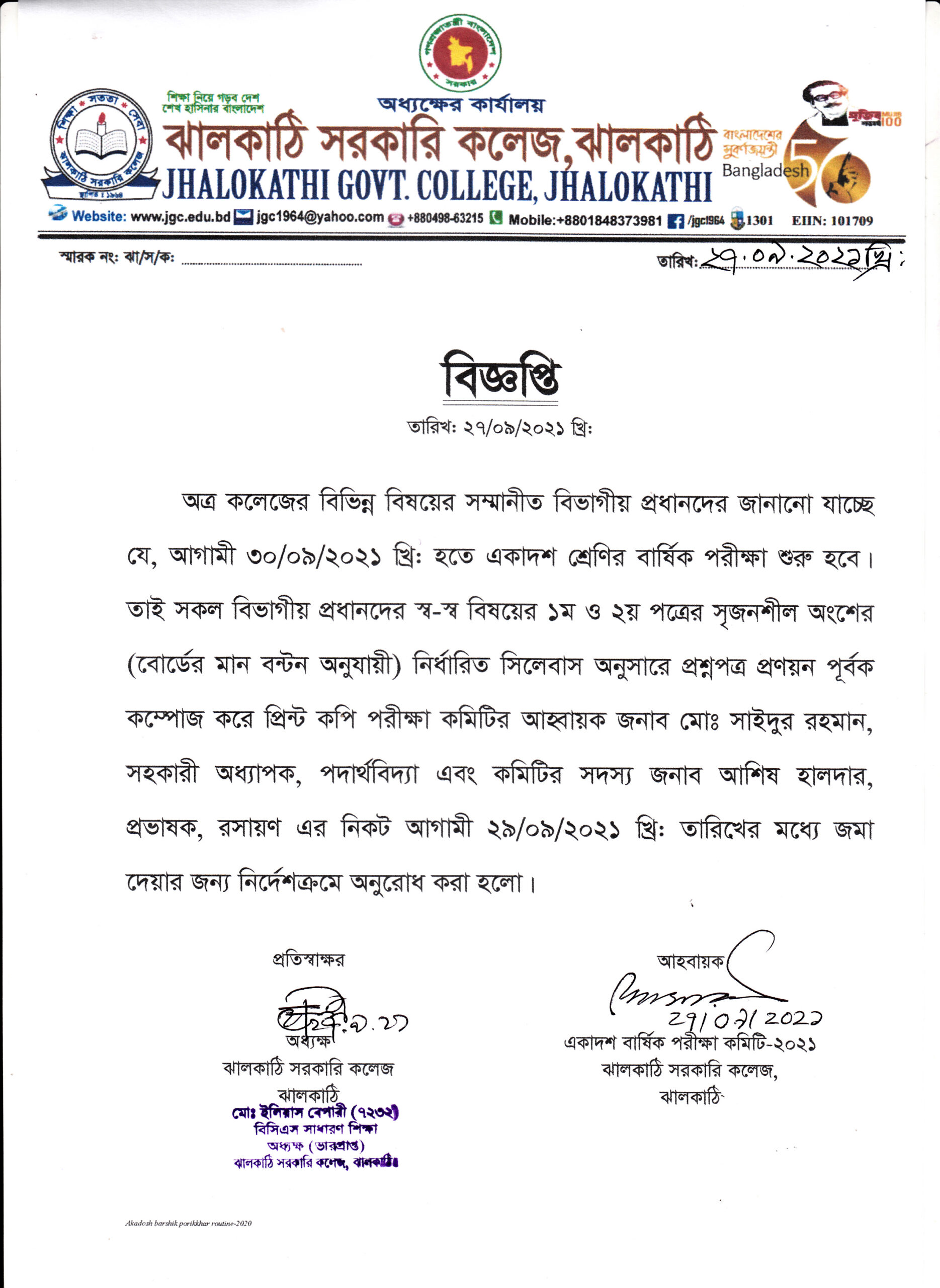 ২০২০-২১ শিক্ষাবর্ষের একাদশ শ্রেণির বার্ষিক পরীক্ষা-২০২১ এর নোটিশ প্রকাশিতঃ ২৭ সেপ্টেম্বর , ২০২১, ৪:১৮ অপরাহ্ন Facebook Twitter Print Facebook Twitter Print