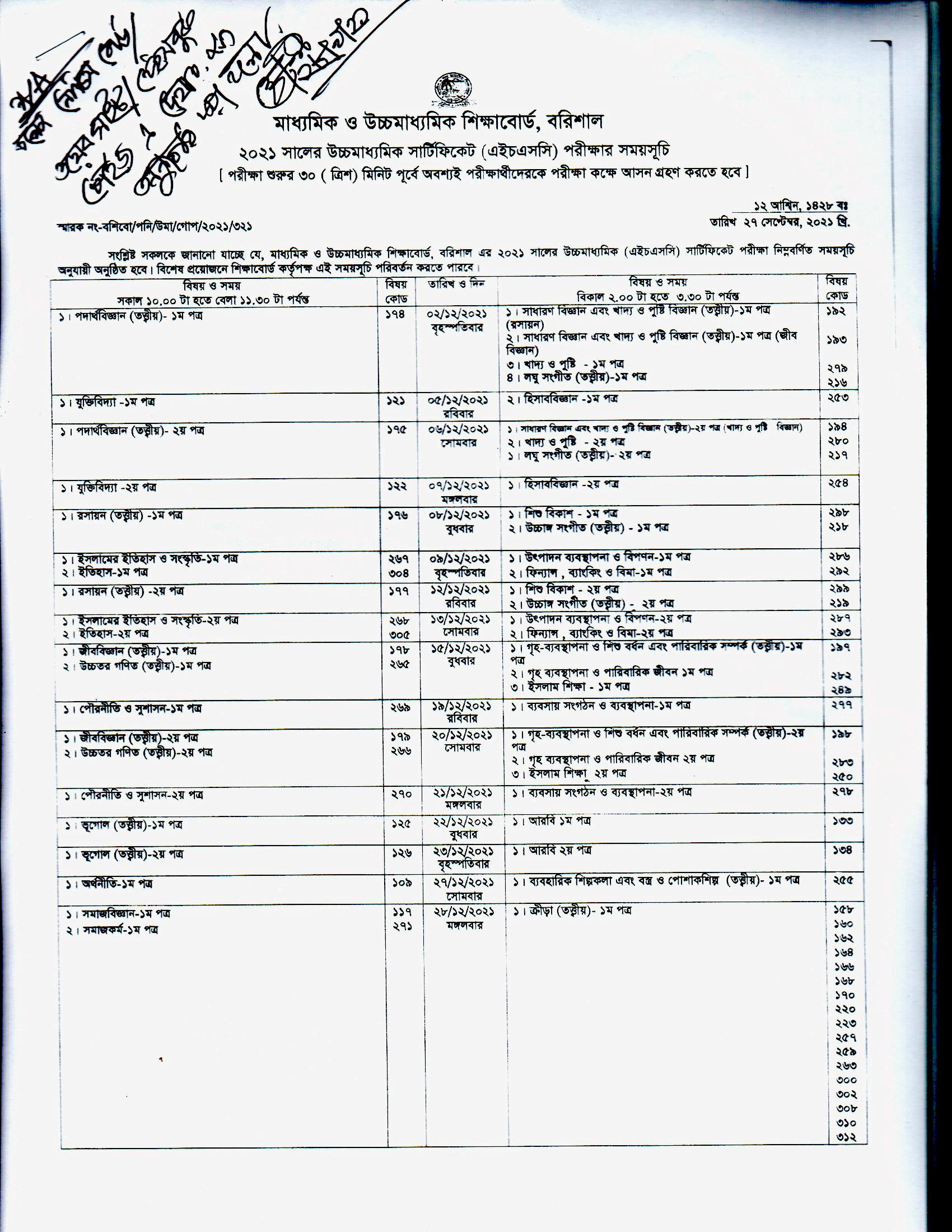 ২০২১ সালের উচ্চ মাধ্যমিক সার্টিফিকেট (এইচএসসি) পরীক্ষার সময়সূচি। প্রকাশিতঃ ২৮ সেপ্টেম্বর , ২০২১, ১১:১২ পূর্বাহ্ন Facebook Twitter Print Facebook Twitter Print