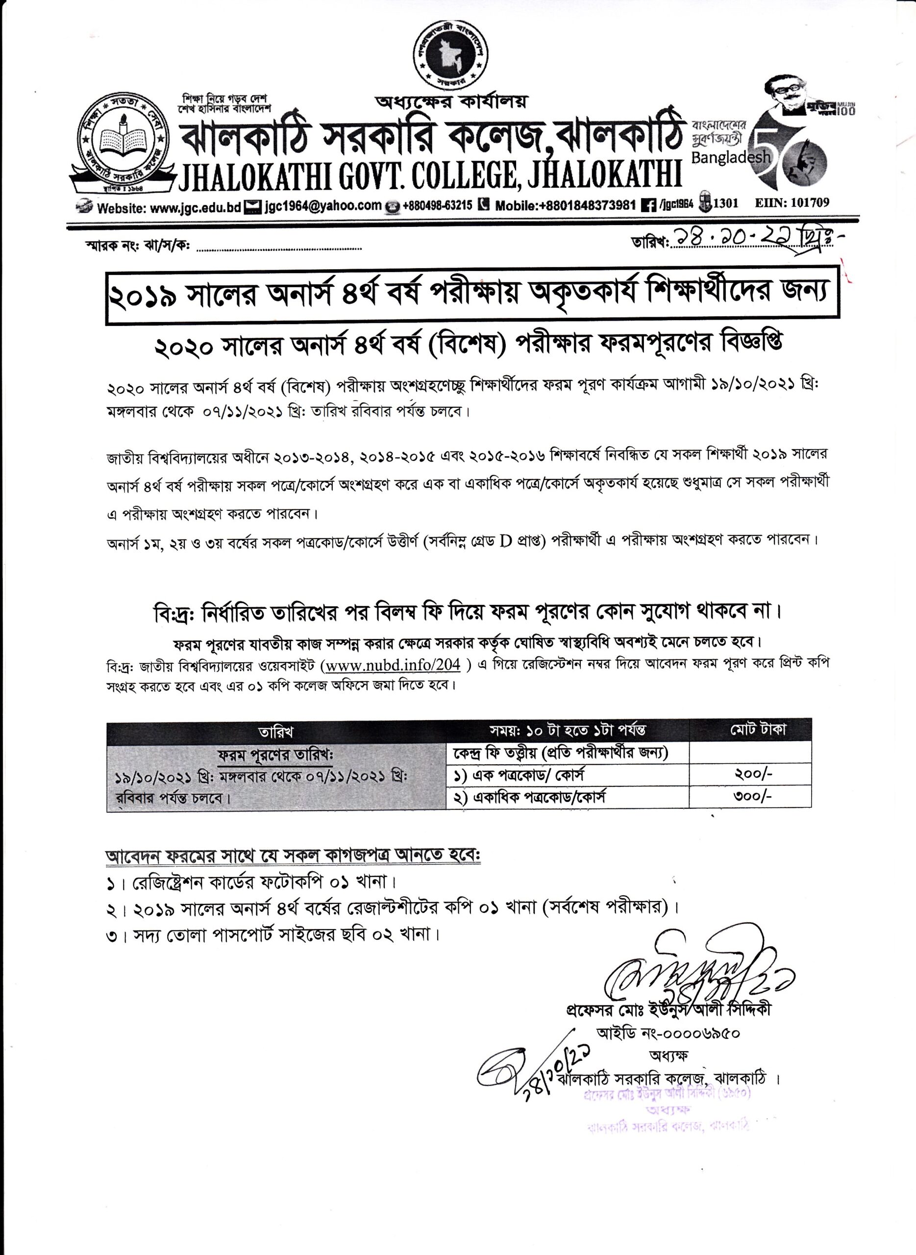 ২০২০ সালের অনার্স ৪র্থ বর্ষ (বিশেষ) পরীক্ষার ফরম পূরণ বিজ্ঞপ্তি (২০১৯ এর পরীক্ষায় অকৃতকার্য যারা) প্রকাশিতঃ ১৪ অক্টোবর , ২০২১, ৩:৩২ অপরাহ্ন Facebook Twitter Print Facebook Twitter Print