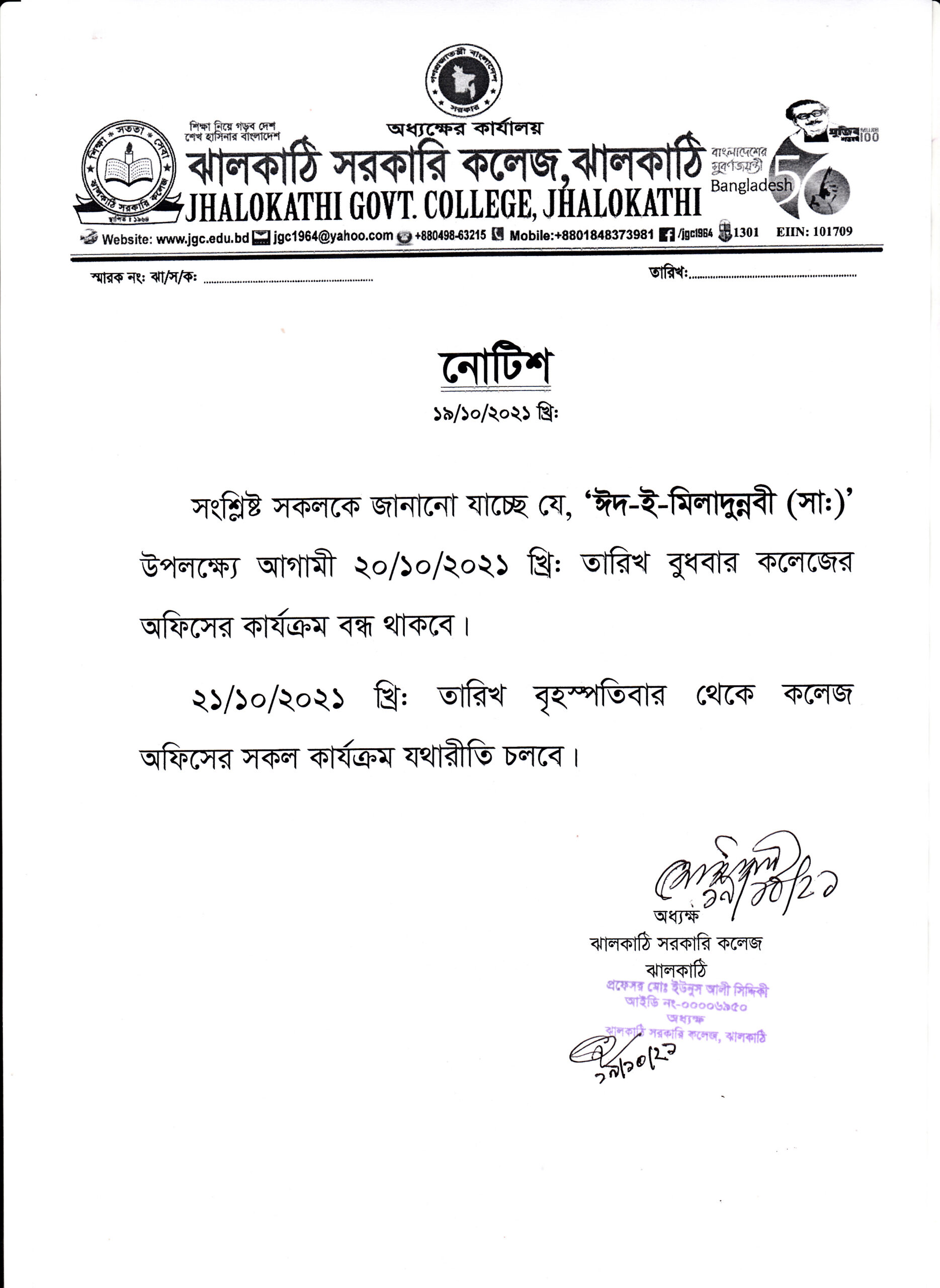ঈদ-ই-মিলাদুন্নবী (ﷺ) উপলক্ষ্যে ২০/১০/২০২১ তারিখ অফিসের কার্যক্রম বন্ধ সংক্রান্ত বিজ্ঞপ্তি প্রকাশিতঃ ১৯ অক্টোবর , ২০২১, ১:৫৭ অপরাহ্ন Facebook Twitter Print Facebook Twitter Print