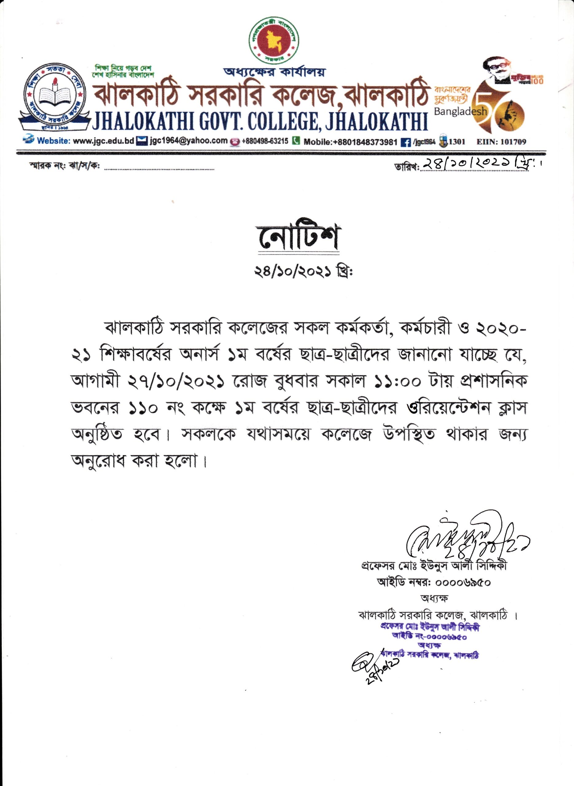 অনার্স ১ম বর্ষ (২০২০-২০২১ শিক্ষাবর্ষ) এর ওরিয়েন্টেশন ক্লাসের নোটিশ প্রকাশিতঃ ২৪ অক্টোবর , ২০২১, ৩:৫৬ অপরাহ্ন Facebook Twitter Print Facebook Twitter Print