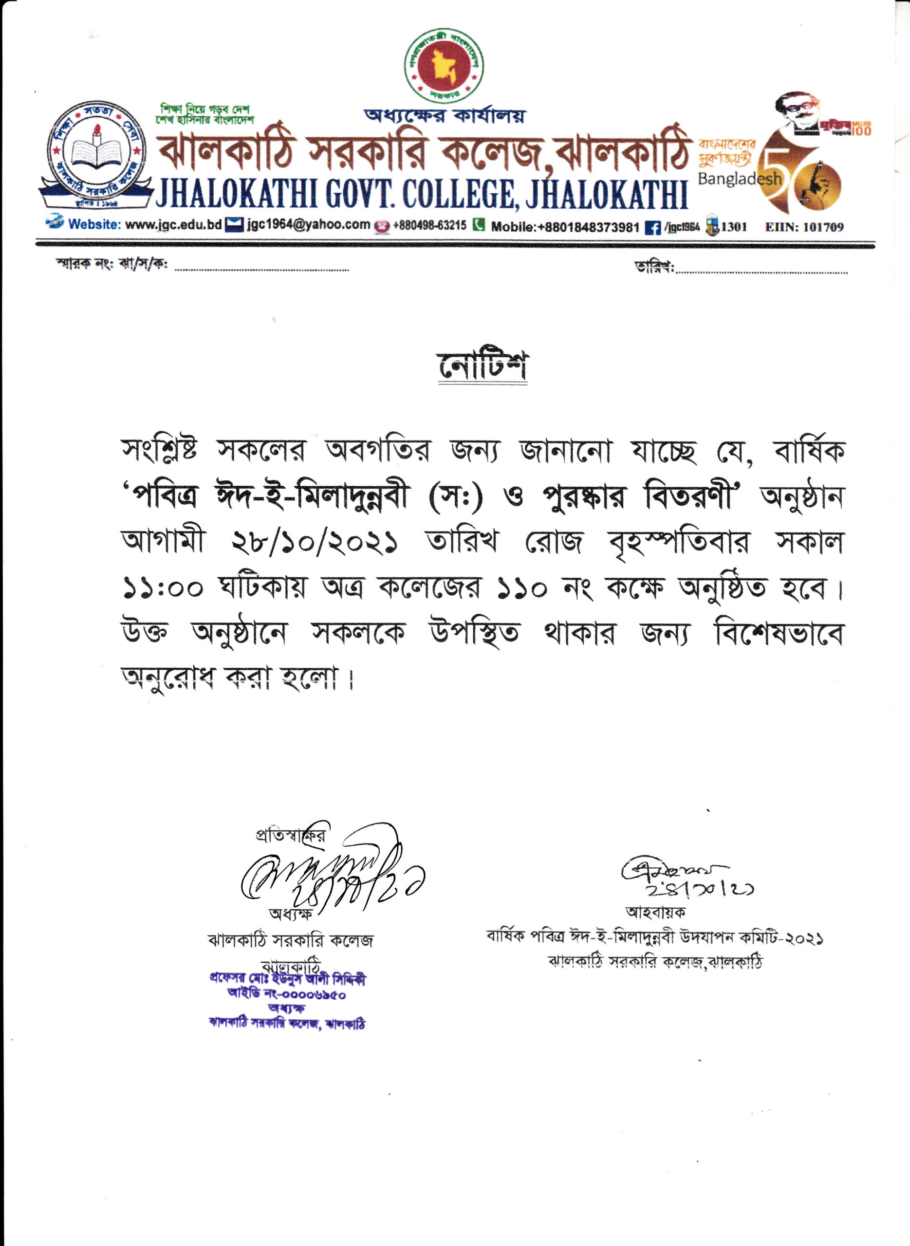 বার্ষিক পবিত্র ঈদ-ই-মিলাদুন্নবী (ﷺ) ও পুরষ্কার বিতরণী অনুষ্ঠান এর নোটিশ প্রকাশিতঃ ২৪ অক্টোবর , ২০২১, ৪:১৫ অপরাহ্ন Facebook Twitter Print Facebook Twitter Print