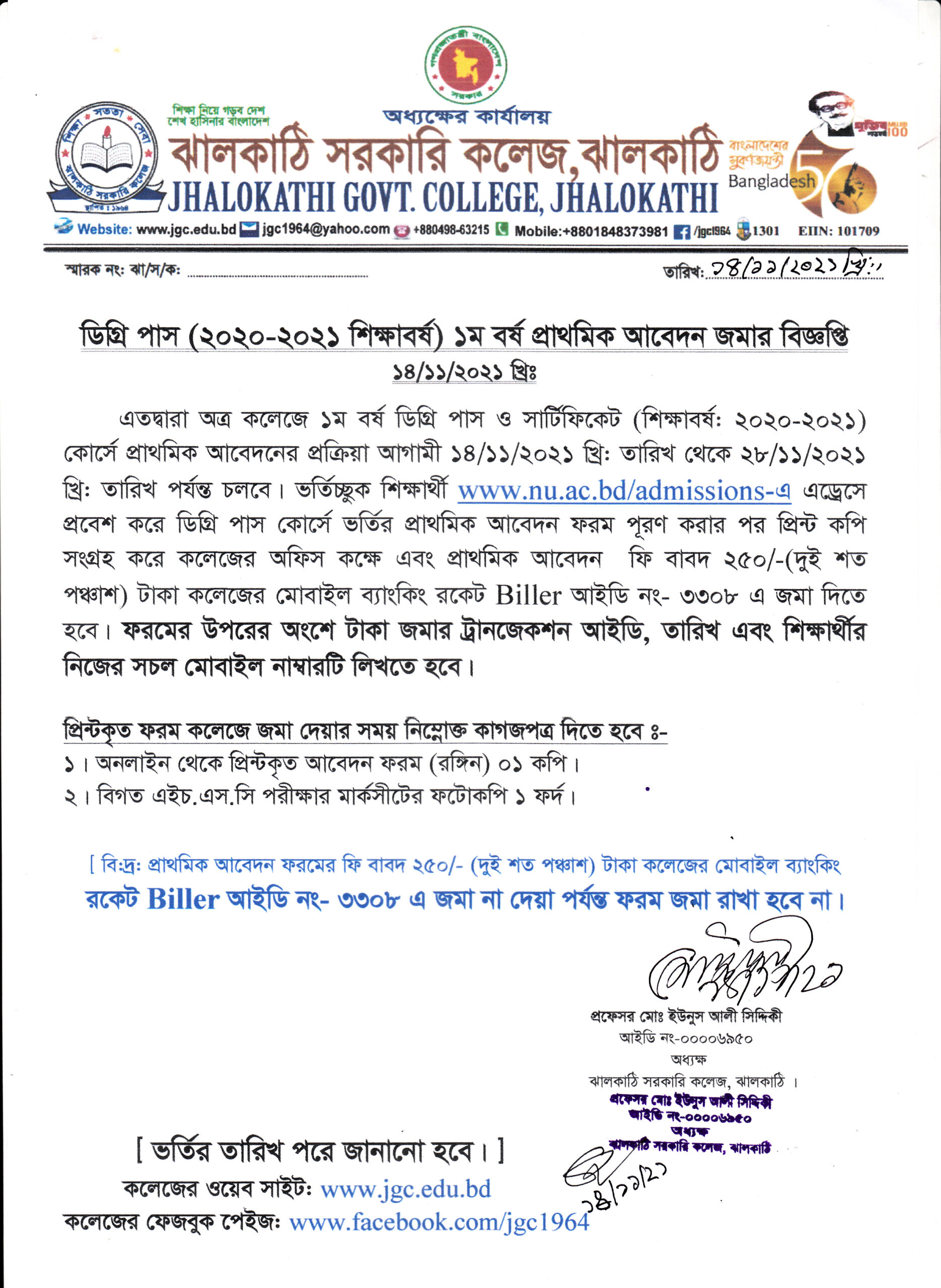 ডিগ্রি (পাস) ও সার্টিফিকেট কোর্স ১ম বষ ২০২০-২১ শিক্ষাবর্ষের প্রাথমিক আবেদনের বিজ্ঞপ্তি প্রকাশিতঃ ১৪ নভেম্বর , ২০২১, ৩:৫৮ অপরাহ্ন Facebook Twitter Print Facebook Twitter Print