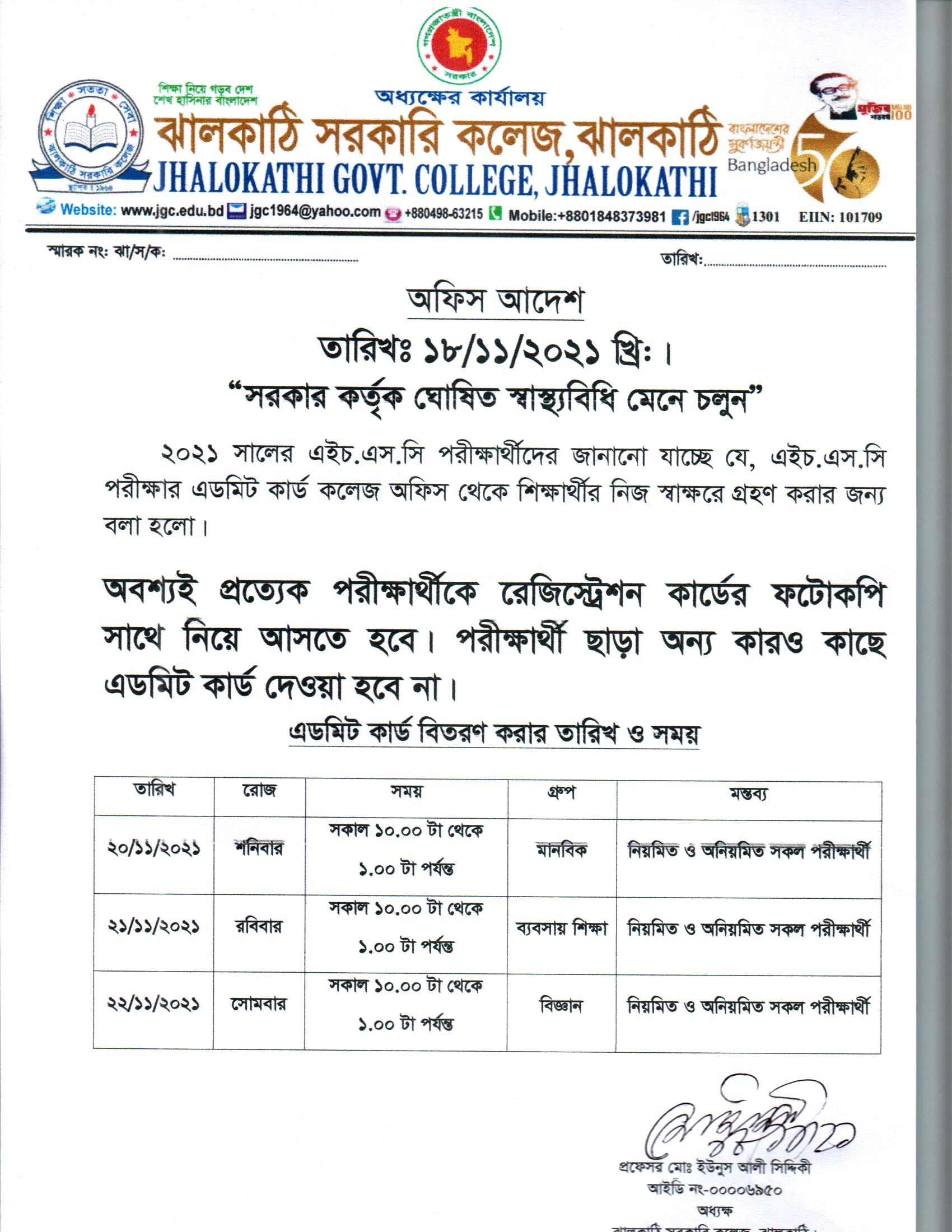 ২০২১ সালের এইচ.এস.সি পরীক্ষার্থীদের এডমিট কার্ড বিতরণের নোটিশ। প্রকাশিতঃ ১৮ নভেম্বর , ২০২১, ৪:১৪ অপরাহ্ন Facebook Twitter Print Facebook Twitter Print