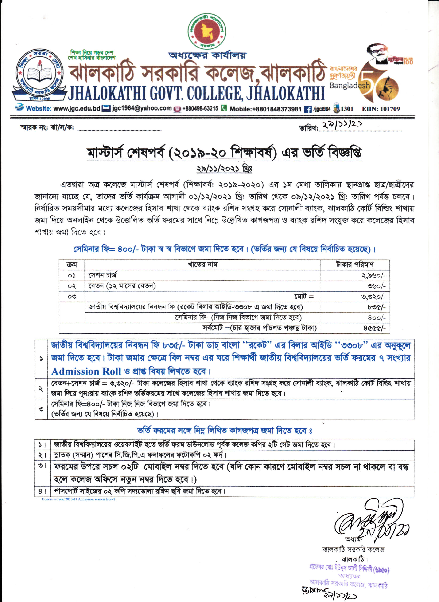 মাস্টার্স শেষপর্ব (২০১৯-২০ শিক্ষাবর্ষ) এর ভর্তি বিজ্ঞপ্তি প্রকাশিতঃ ২৯ নভেম্বর , ২০২১, ৪:৩০ অপরাহ্ন Facebook Twitter Print Facebook Twitter Print