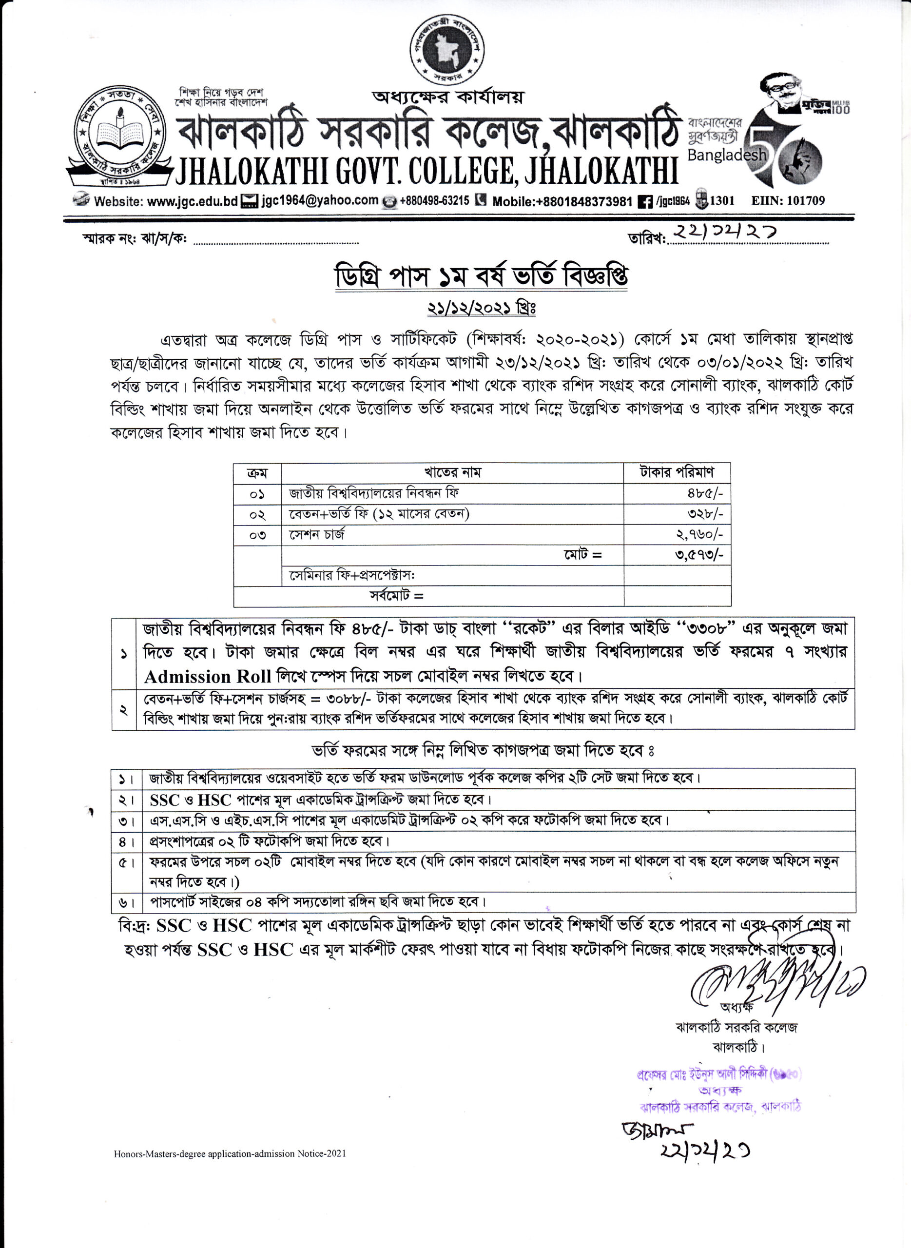 ডিগ্রি পাস ১ম বর্ষ (২০২০-২১ শিক্ষাবর্ষ) এর ১ম মেধা তালিকার ভর্তি বিজ্ঞপ্তি প্রকাশিতঃ ২২ ডিসেম্বর , ২০২১, ১০:৫১ পূর্বাহ্ন Facebook Twitter Print Facebook Twitter Print
