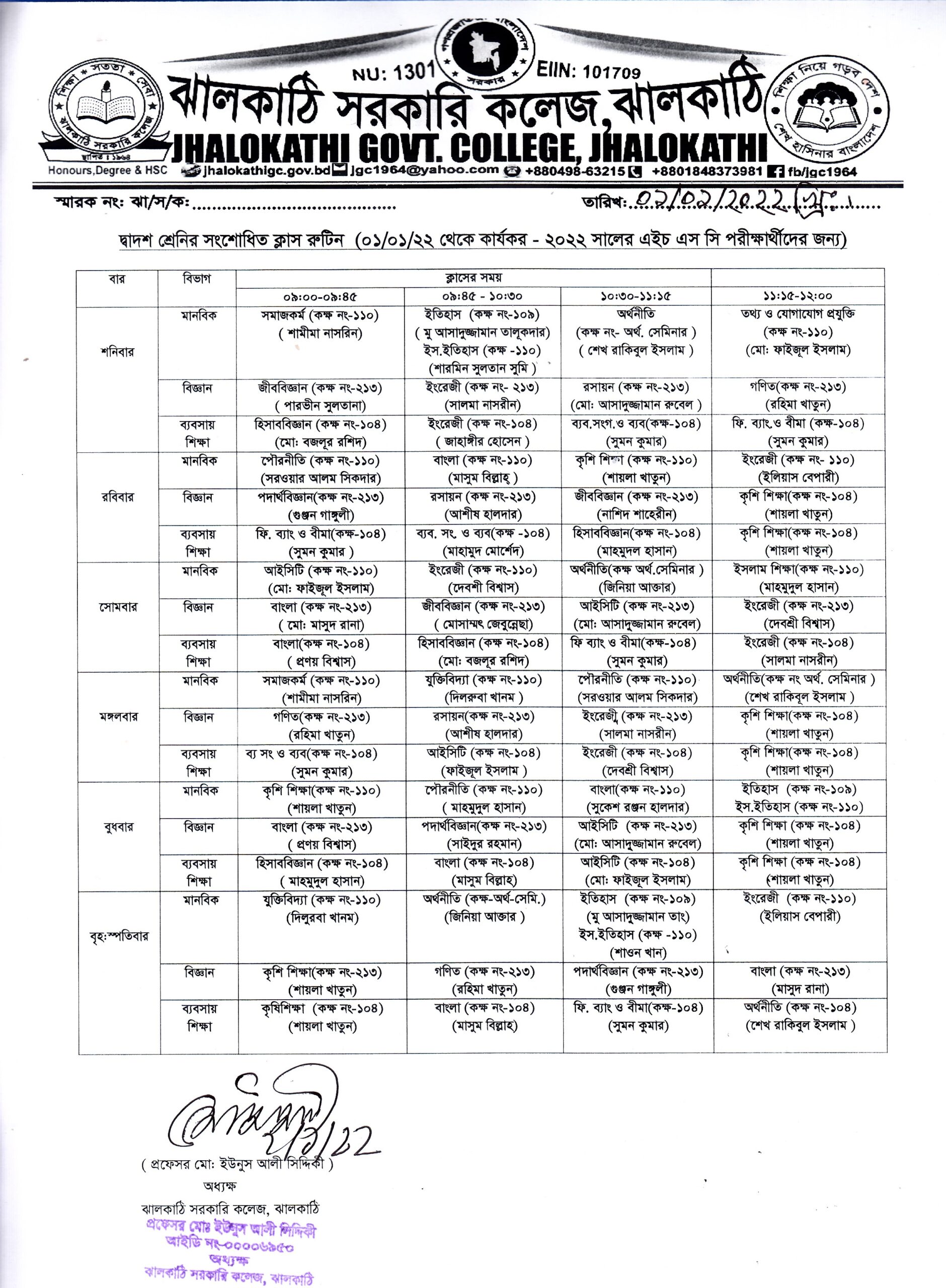 দ্বাদশ শ্রেণির সংশোধিত ক্লাস রুটিন ( ২০২২ সালের এইচ এস সি পরীক্ষার্থীদের জন্য) প্রকাশিতঃ ২ জানুয়ারী , ২০২২, ৪:০৭ অপরাহ্ন Facebook Twitter Print Facebook Twitter Print