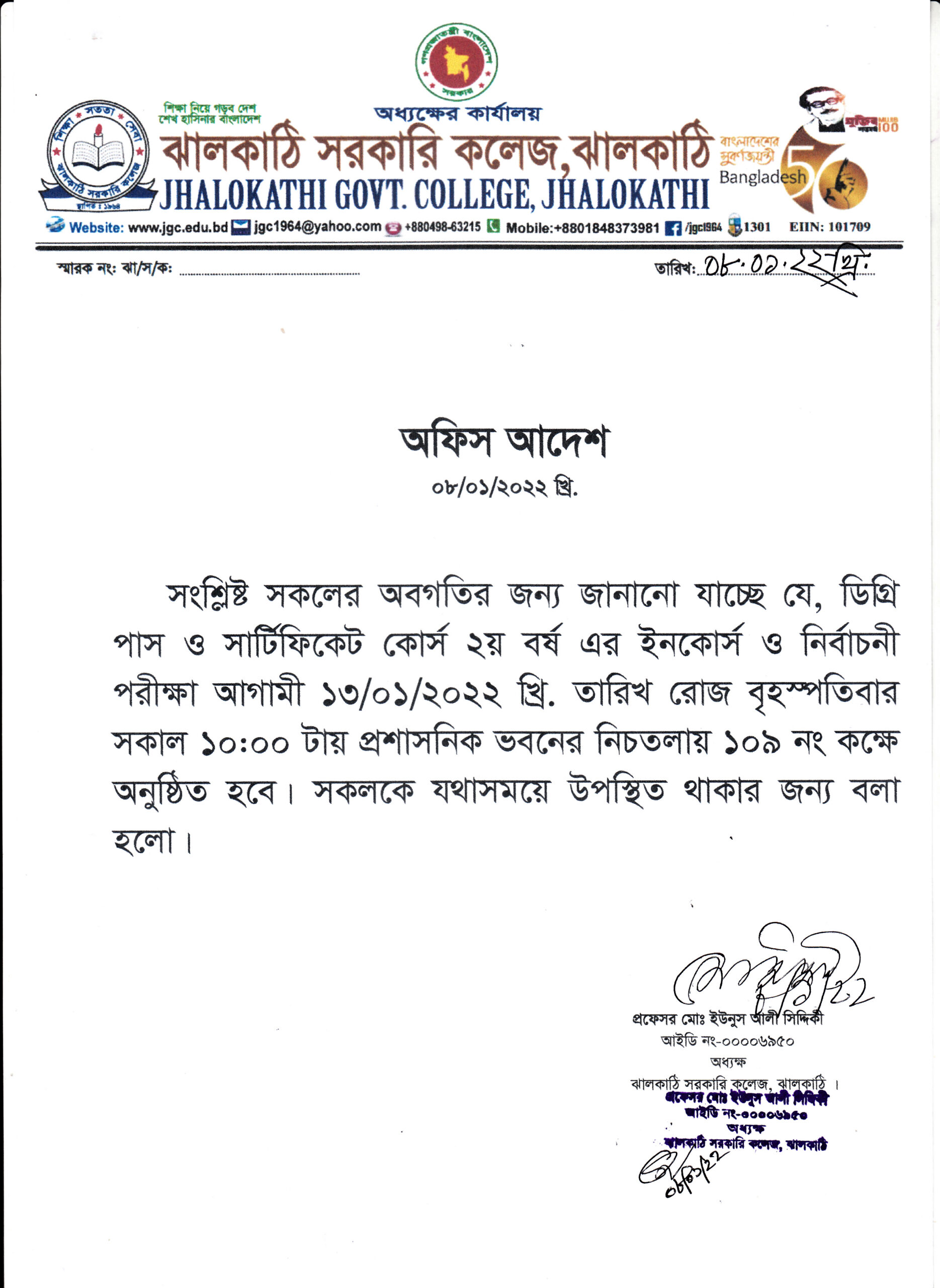 ডিগ্রি পাস ও সার্টিফিকেট কোর্স ২য় বর্ষ এর ইনকোর্স ও নির্বাচনী পরীক্ষার নোটিশ প্রকাশিতঃ ৮ জানুয়ারী , ২০২২, ৩:০৬ অপরাহ্ন Facebook Twitter Print Facebook Twitter Print