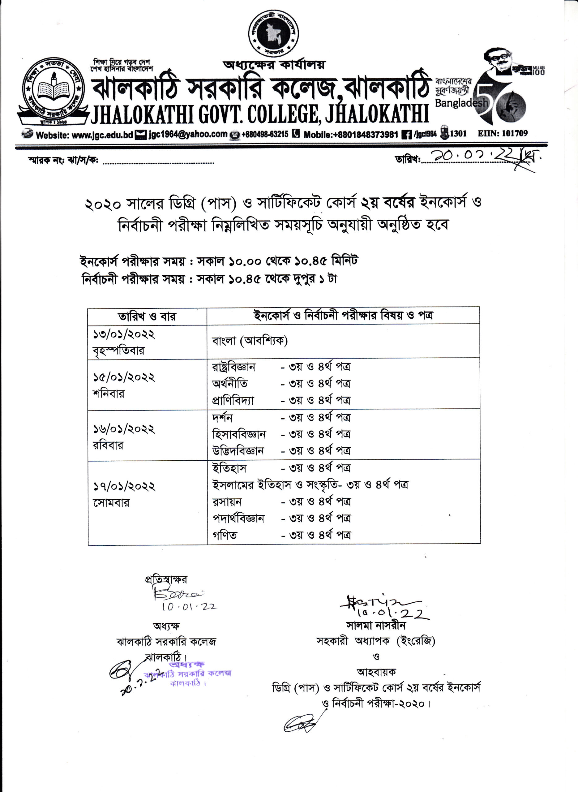 ২০২০ সালের ডিগ্রি (পাস) ২য় বর্ষ এর ইনকোর্স ও নির্বাচনী পরীক্ষার সময়সূচি প্রকাশিতঃ ১০ জানুয়ারী , ২০২২, ১:০৬ অপরাহ্ন Facebook Twitter Print Facebook Twitter Print