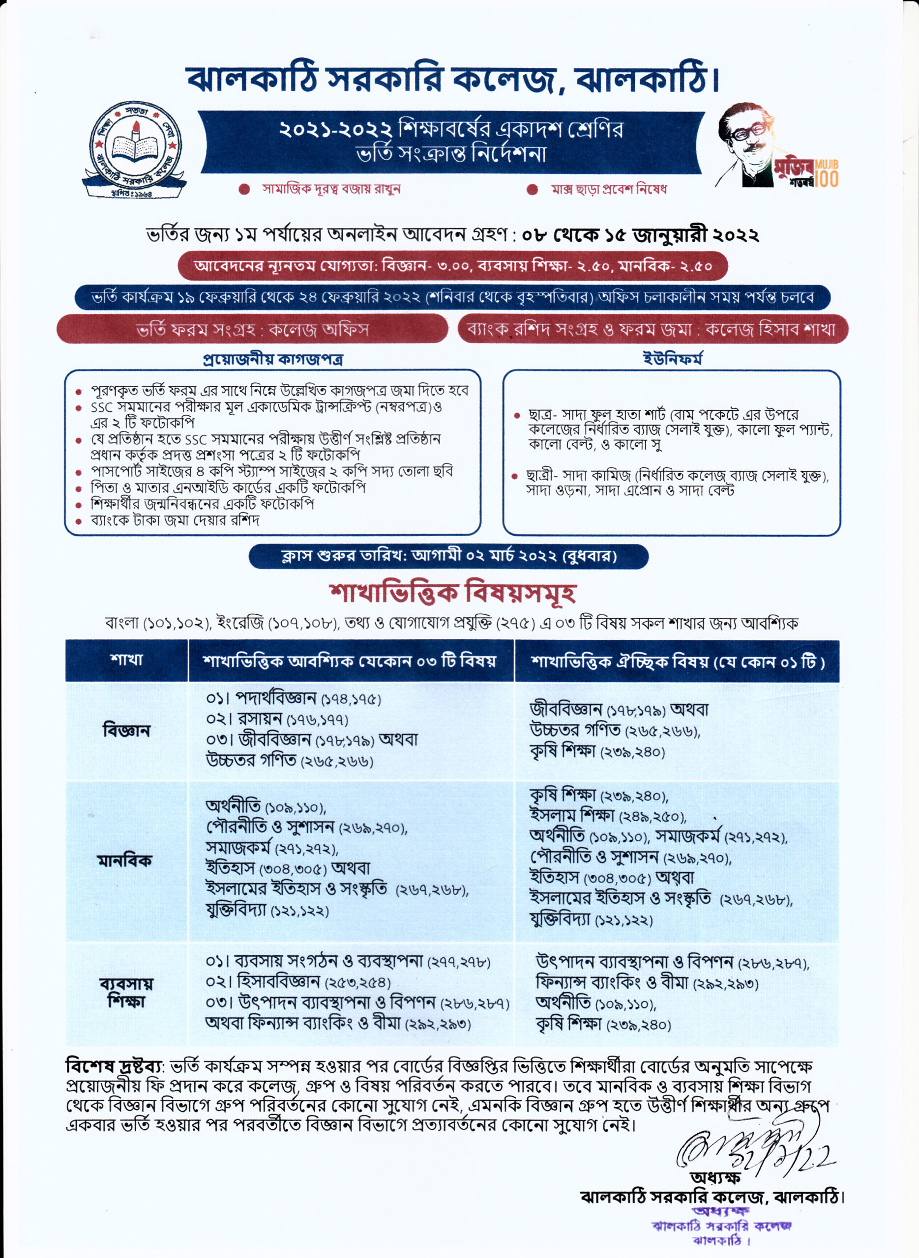 ২০২১-২০২২ শিক্ষাবর্ষের একাদশ শ্রেণির ভর্তি সংক্রান্ত নির্দেশনা প্রকাশিতঃ ১২ জানুয়ারী , ২০২২, ২:২৩ অপরাহ্ন Facebook Twitter Print Facebook Twitter Print