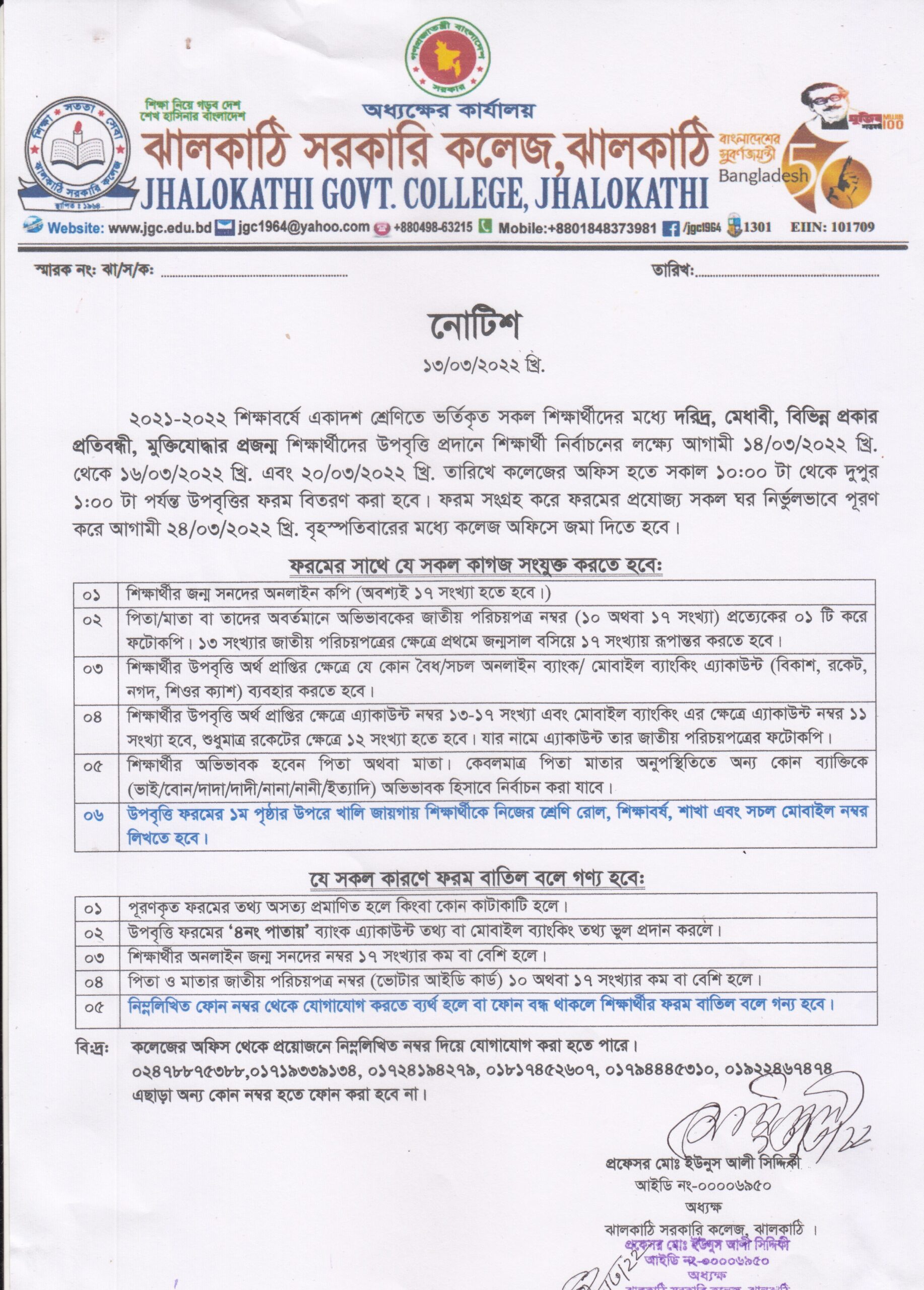 ২০২১-২০২২ শিক্ষাবর্ষে একাদশ শ্রেণিতে ভর্তিকৃত শিক্ষার্থীদের উপবৃত্তি ফরম বিতরণ সংক্রান্ত নোটিশ প্রকাশিতঃ ১৩ মার্চ , ২০২২, ৫:৫৫ অপরাহ্ন Facebook Twitter Print Facebook Twitter Print