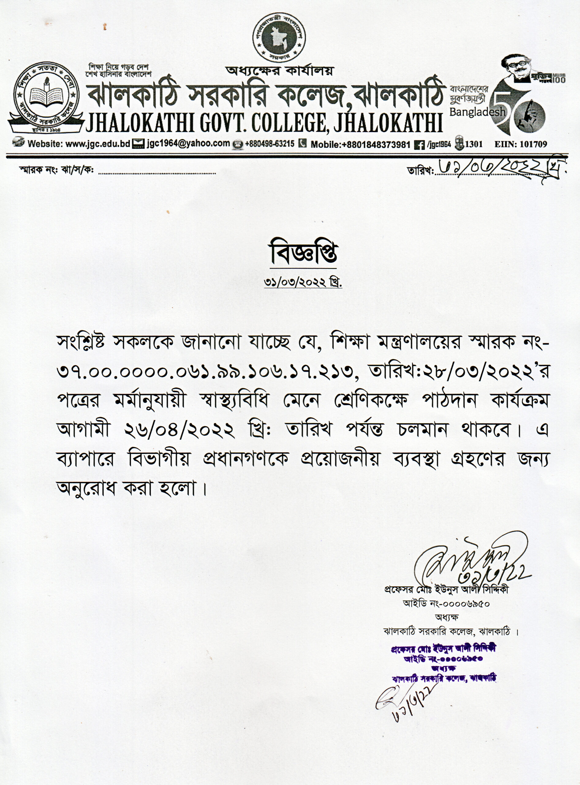 কলেজের শ্রেণিকক্ষে পাঠদান কার্যক্রম চলমান থাকার নোটিশ প্রকাশিতঃ ৩১ মার্চ , ২০২২, ১২:০৬ অপরাহ্ন Facebook Twitter Print Facebook Twitter Print