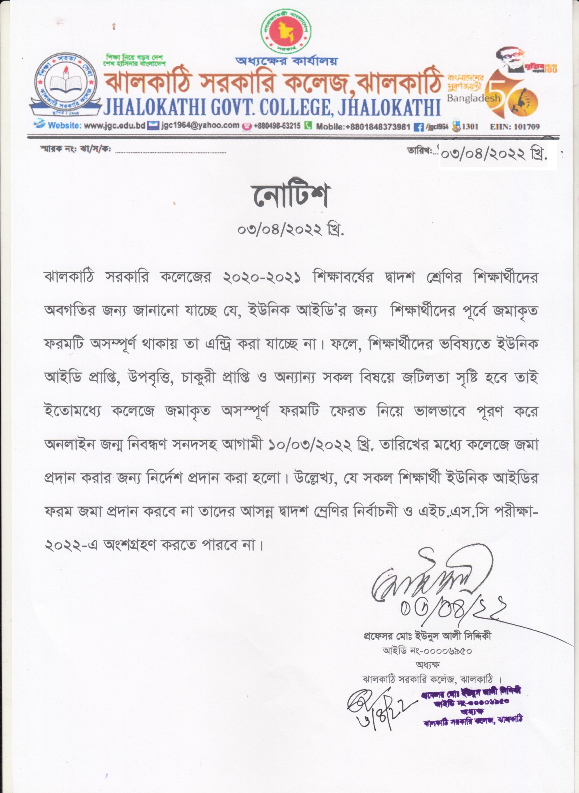 ২০২০-২১ শিক্ষাবর্ষের দ্বাদশ শ্রেণির শিক্ষার্থীদের ইউনিক আইডির নোটিশ প্রকাশিতঃ ৩ এপ্রিল , ২০২২, ২:৪৩ অপরাহ্ন Facebook Twitter Print Facebook Twitter Print