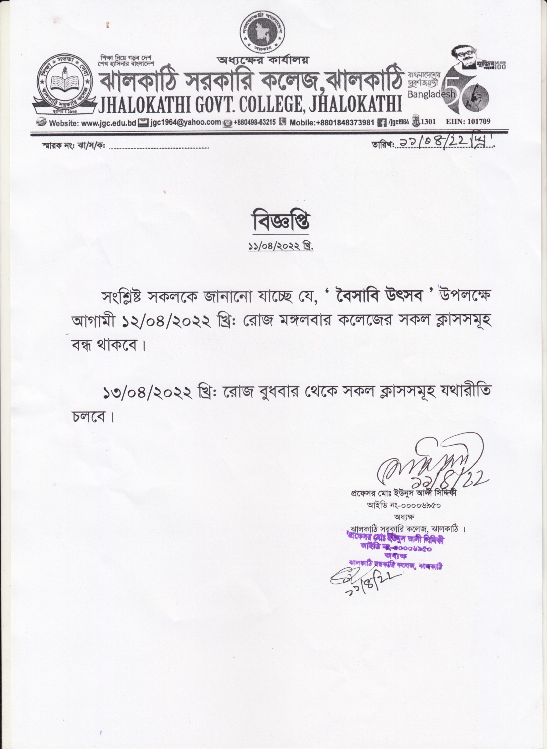 আগামী ১২-৪-২২ খ্রি. তারিখ বৈসাবি উৎসব উপলক্ষে সকল ক্লাসসমূহ বন্ধ সংক্রান্ত প্রকাশিতঃ ১১ এপ্রিল , ২০২২, ২:৪৮ অপরাহ্ন Facebook Twitter Print Facebook Twitter Print