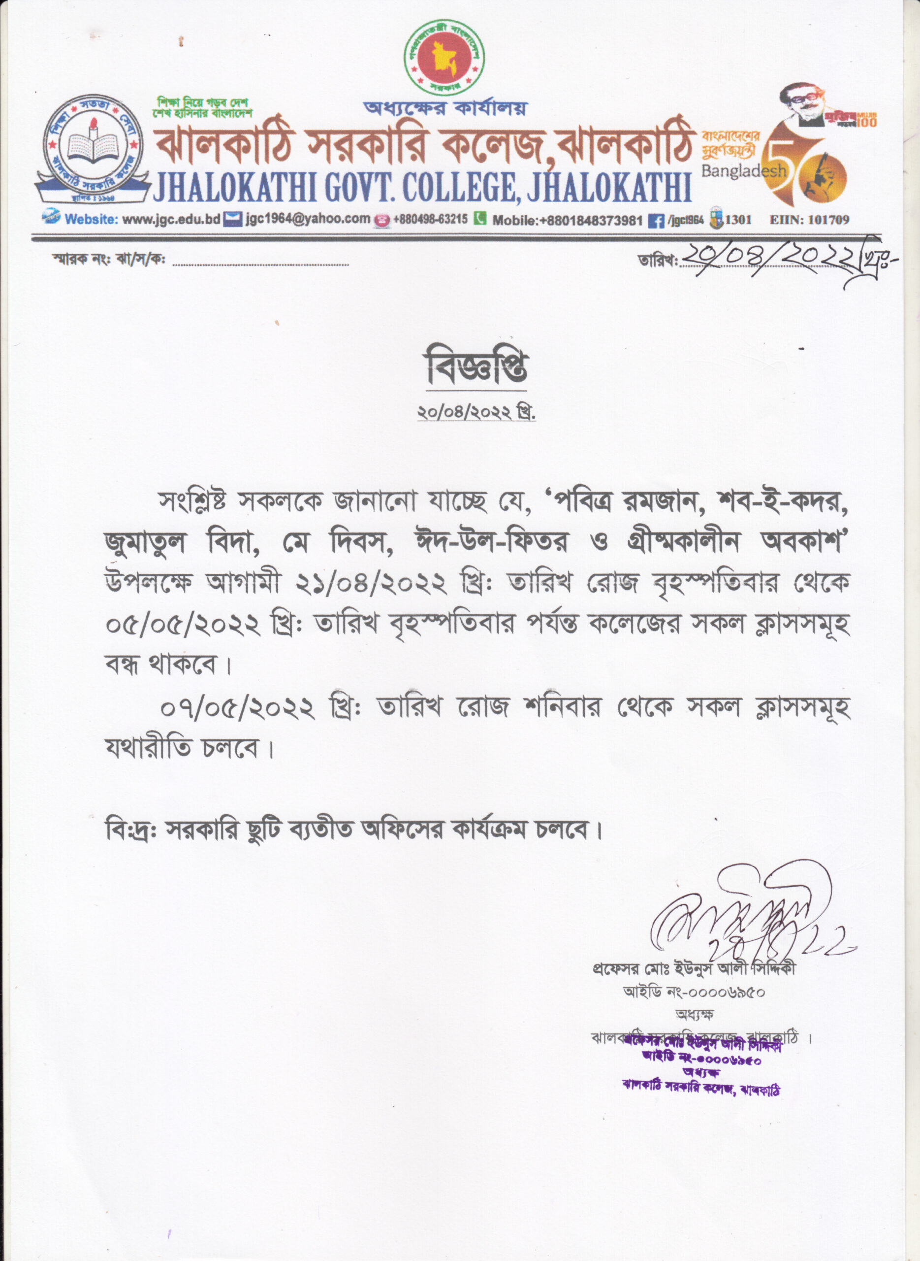পবিত্র রমজান, শব-ই-কদর, জুমাতুল বিদা, মে দিবস, ঈদ-উল-ফিতর ও গ্রীষ্মকালীন অবকাশ উপলক্ষ্যে ক্লাস বন্ধের নোটিশ প্রকাশিতঃ ২০ এপ্রিল , ২০২২, ১১:০১ পূর্বাহ্ন Facebook Twitter Print Facebook Twitter Print