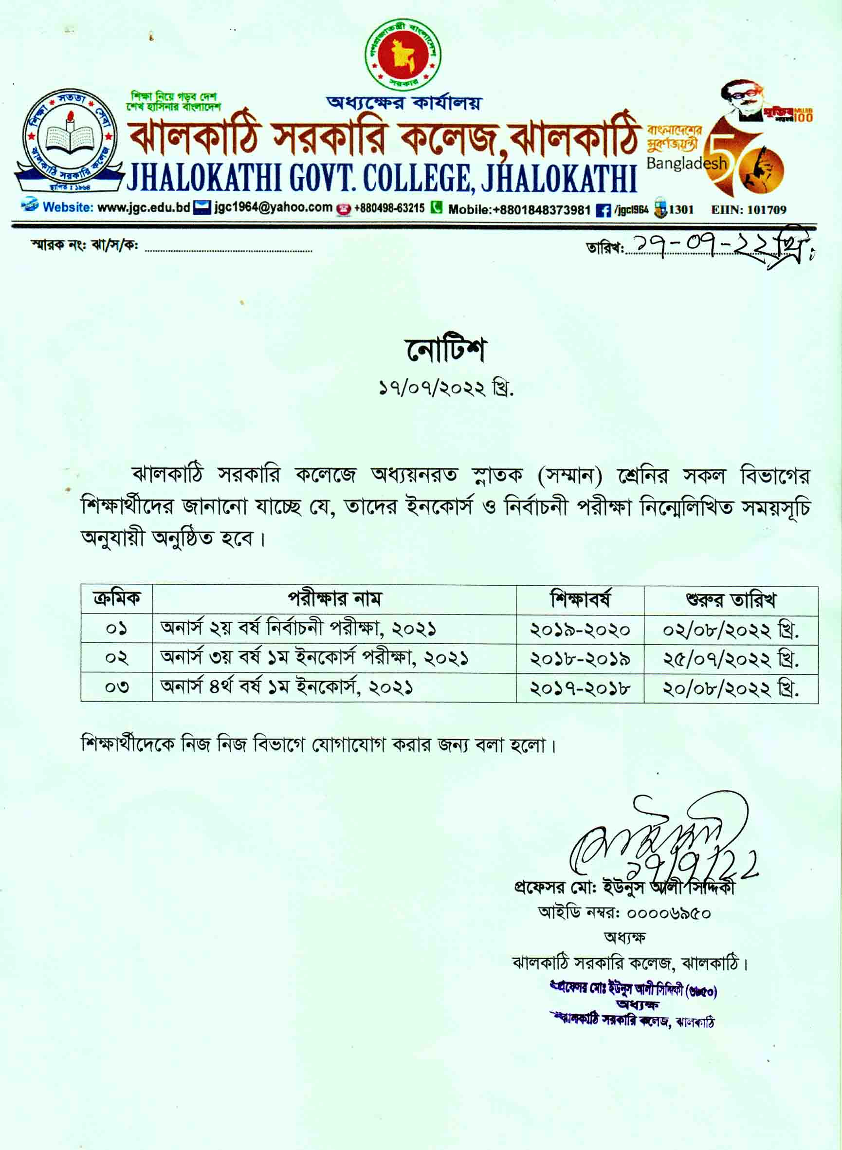 স্নাতক (সম্মান) শ্রেণির শিক্ষার্থীদের ইনকোর্স ও নির্বাচনী পরীক্ষা সংক্রান্ত নোটিশ প্রকাশিতঃ ১৭ জুলাই , ২০২২, ২:৪৭ অপরাহ্ন Facebook Twitter Print Facebook Twitter Print