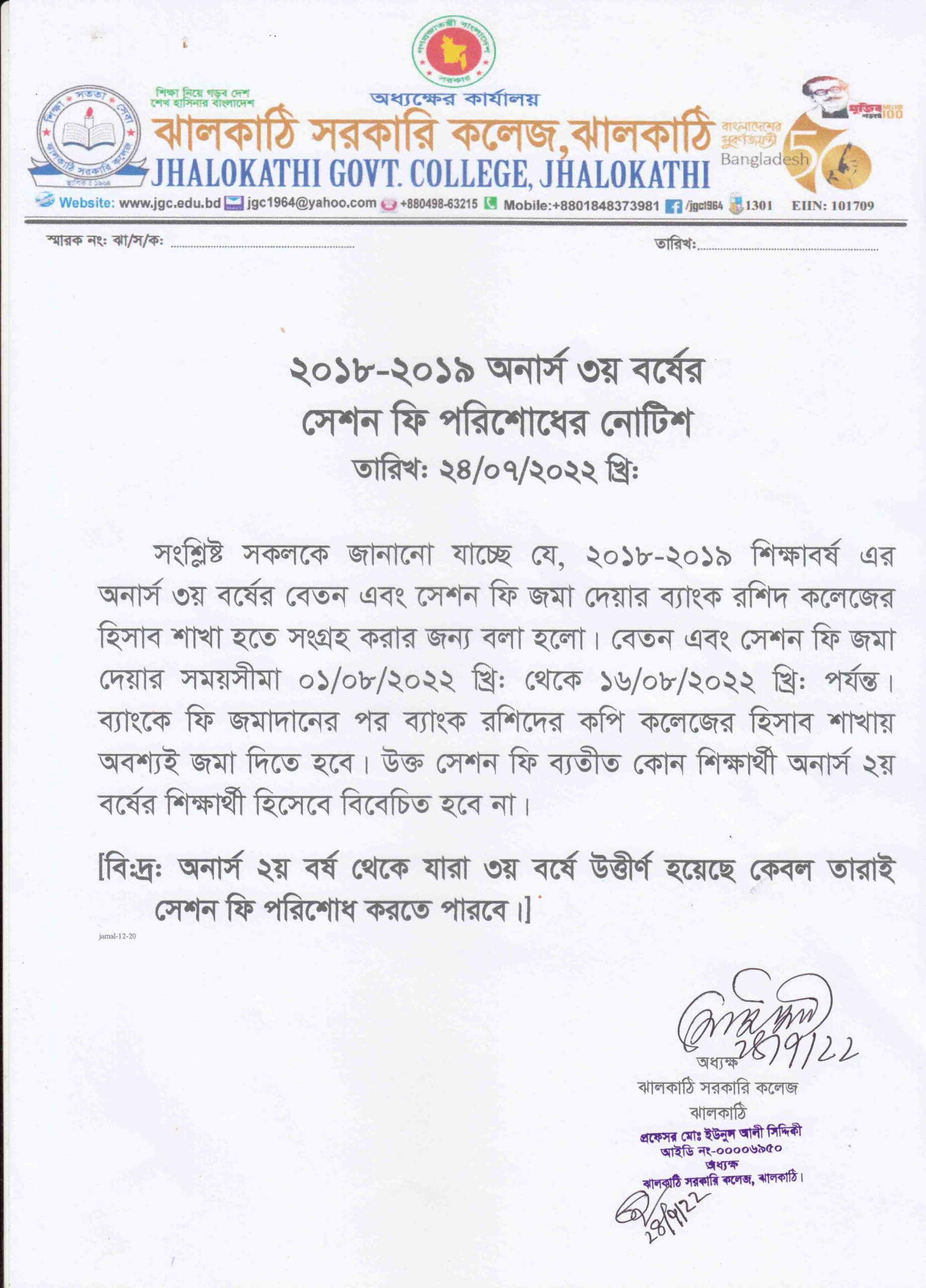 অনার্স ৩য় বর্ষে উত্তীর্ণ শিক্ষার্থীদের সেশন ফি জমা দেয়ার নোটিশ প্রকাশিতঃ ২৪ জুলাই , ২০২২, ১:১২ অপরাহ্ন Facebook Twitter Print Facebook Twitter Print