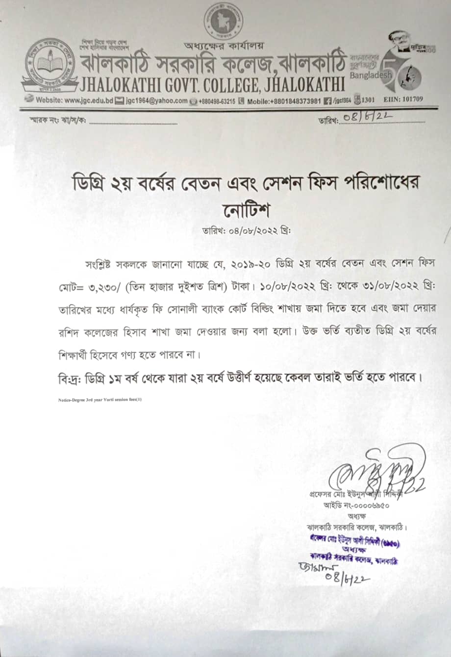 ডিগ্রি ৩য় বর্ষের বেতন এবং সেশন ফিস পরিশোধের নোটিশ প্রকাশিতঃ ৮ অগাস্ট , ২০২২, ১২:৫৫ অপরাহ্ন Facebook Twitter Print Facebook Twitter Print