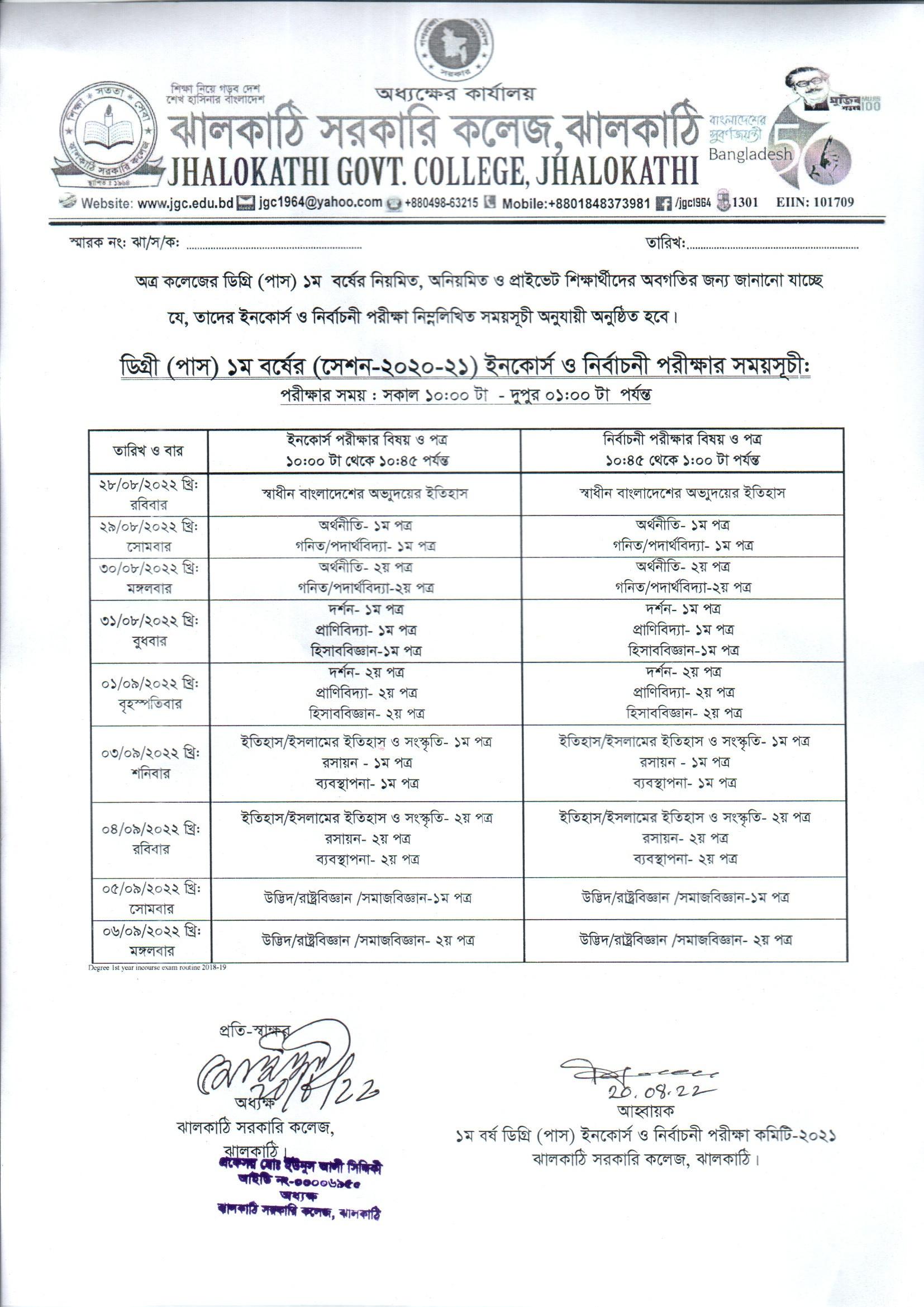 ডিগ্রী (পাস) ১ম বর্ষের (সেশন ২০২০-২১) ইনকোর্স ও নির্বাচনী পরীক্ষার সময়সূচী প্রকাশিতঃ ২০ অগাস্ট , ২০২২, ৩:০৪ অপরাহ্ন Facebook Twitter Print Facebook Twitter Print