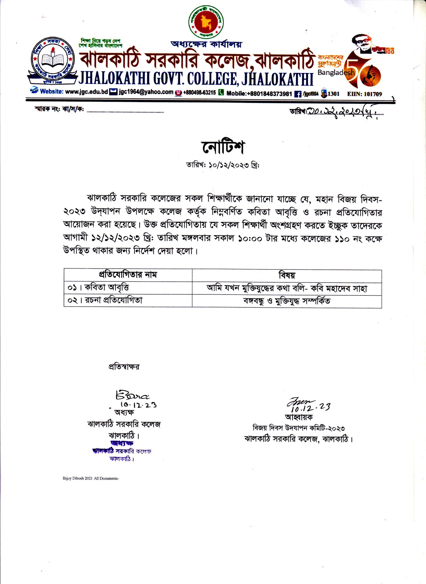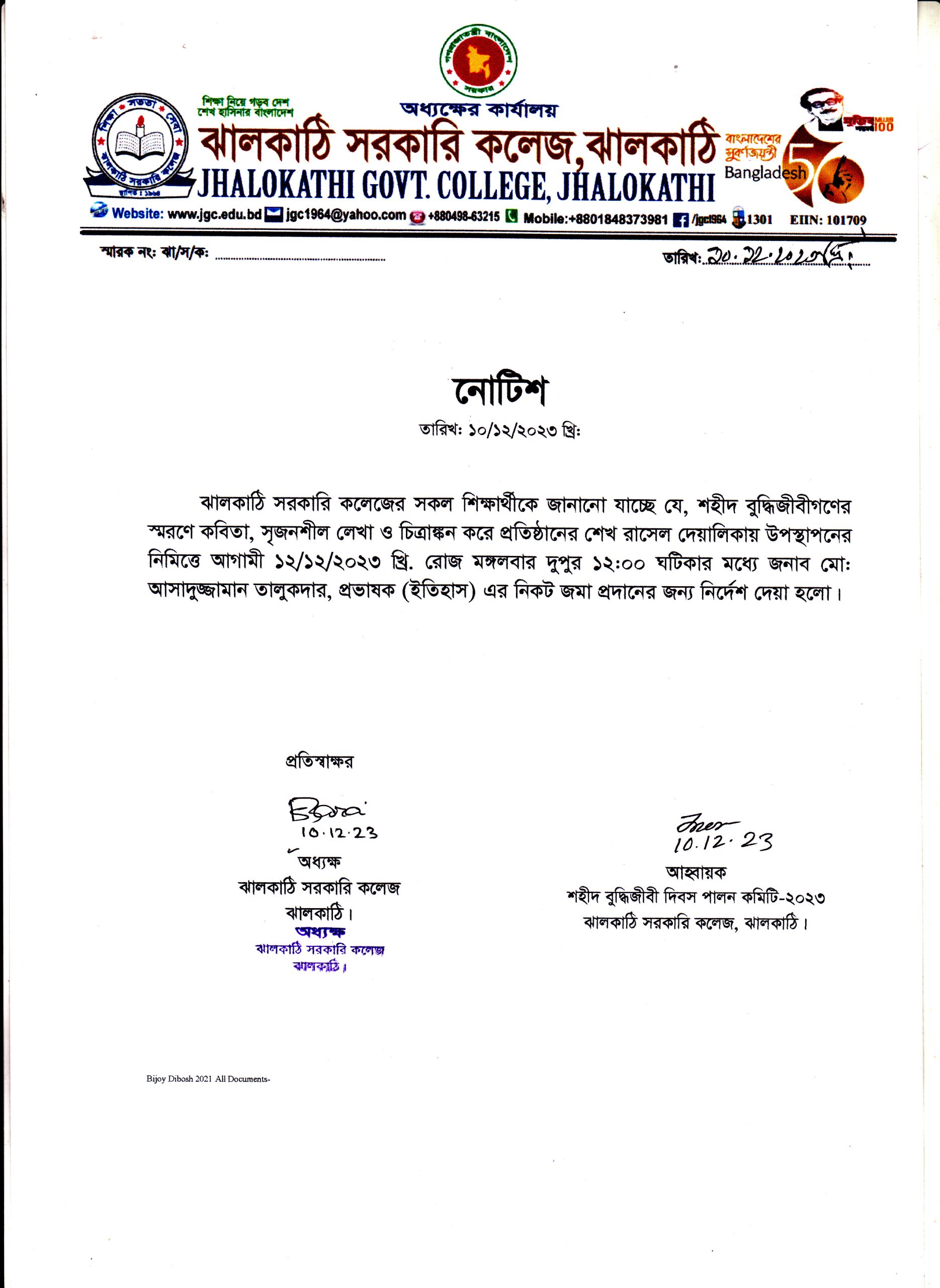 ১৪ ডিসেম্ববর শহীদ বুদ্ধিজীবি দিবস এবং ১৬ ই ডিসেম্বর মহান বিজয় দিবস-২০২৩ উপলক্ষে লেখা, কবিতা ও চিত্রাঙ্কনের আহ্বান প্রকাশিতঃ ১০ ডিসেম্বর , ২০২৩, ৩:২৫ অপরাহ্ন Facebook Twitter Print Facebook Twitter Print