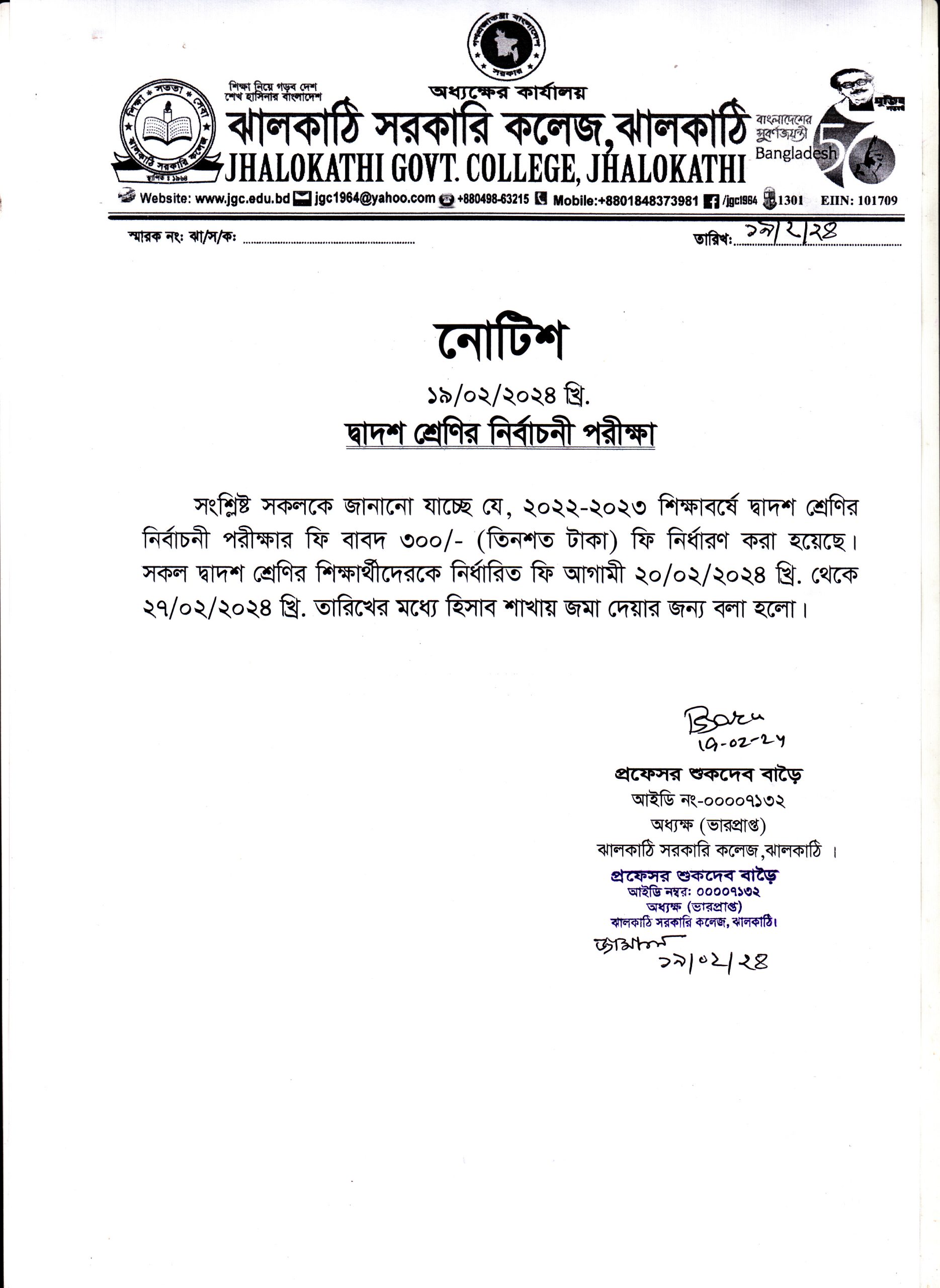 ২০২২-২০২৩ শিক্ষাবর্ষের দ্বাদশ শ্রেণির নির্বাচনী পরীক্ষার ফি প্রদানের নোটিশ প্রকাশিতঃ ১৯ ফেব্রুয়ারী , ২০২৪, ১২:৫৯ অপরাহ্ন Facebook Twitter Print Facebook Twitter Print